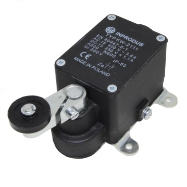 Wyłączniki krańcowe KW-2111 firmy Inprodus to przemysłowe łączniki krańcowe ogólnego stosowania. Korpus łącznika wykonany jest z metalu. Sprzężona z korpusem obrotowa głowica wyposażona jest w metalową dźwignię z rolą wykonaną z tworzywa sztucznego. Łączniki KW-2111 stosowane sa urządzeniach transportu poziomego i pionowego, w urządzenia budowlanych, podnośnikach i przemyśle w trunych warunkach użytkowania.