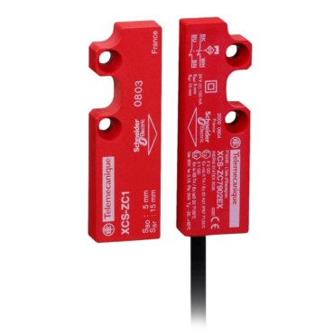 Łączniki magnetyczne serii Preventa XCSDMC firmy Telemecanique Sensors to kompaktowe, kodowane łączniki magnetyczne bezpieczeństwa w prostokątnej plastikowej obudowie o wymiarach 51x16 x7 mm (wymiary jednej części). Produkty te stosowane są w aplikacjach przemysłowych bezpieczeństwa maszyn i przeznaczone do monitorowania położenia drzwi, osłon, pokryw i innych ruchomych części maszyn mających wpływ na bezpieczeństwo obsługi. Łączniki z kodowanym magnesem posiadają stopniowane styki kontaktronowe, które zapewniają sekwencyjne zamykanie lub otwieranie obwodów w celu zapewnienia maksymalnego bezpieczeństwa operatorów maszyn. Wyłącznik magnetyczny bezpieczeństwa działa na zasadzie wykrywania zmiany pola magnetycznego przez kontaktron, w odpowiedzi na ruch magnesu. Składa się z dwóch części, magnesu montowanego na ruchomych częściach jak osłony, drzwi itp. oraz zamontowanego na stałej części łącznika zawierającego styki wrażliwe na zmiany pola magnetycznego. łączniki te reagują na ruch magnesu, zmieniając swój stan otwarcia/zamknięcia. Łączniki kompaktowe XCSDMC wykonywane są z kablem 2, 5 lub 10 m oraz ze złączem konektorowym M8 na kablu 10 cm. Produkt stosowany jest aplikacjach i maszynach o małej bezwładności. Do lipca 2023r łączniki oferowane były jako seria Preventa XCSDMC Schneider Electric.