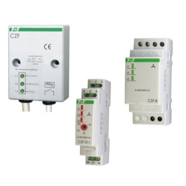 Czujniki zaniku fazy serii CZF przeznaczone są do zabezpieczenia silnika elektrycznego zasilanego z sieci trójfazowej w przypadkach zaniku napięcia w co najmniej jednej fazie lub asymetrii napięć między fazami, grożącymi zniszczeniem silnika.