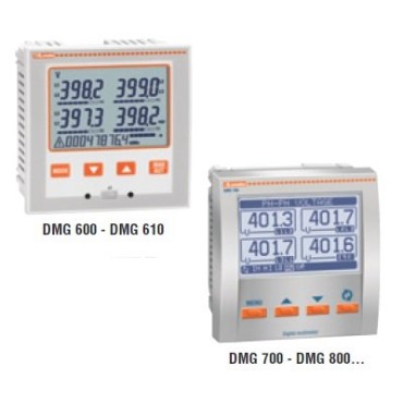 Mierniki cyfrowe DMG 600/610, DMG 700 i DMG 800 są od powiędnie do pomiarów z wymaganą wysoką dokładnością i kontroli energii w systemach jej dystrybucji. Wykonane zostały w obudowie do montażu tablicowego (96x96mm) i posiadają otwory montażowe (1 dla DMG 600/610 i 4 dla DMG 700/800) do podłączenia modułów rozszerzeń, które umożliwiają stosowanie w wielu aplikacjach. Do głównych zalet mierników należą: szeroki zakres napięcia zasilania, wysoka dokładność pomiarów, możliwość rozbudowy i prosty w obsłudze graficzny interaktywny interfejs użytkownika.