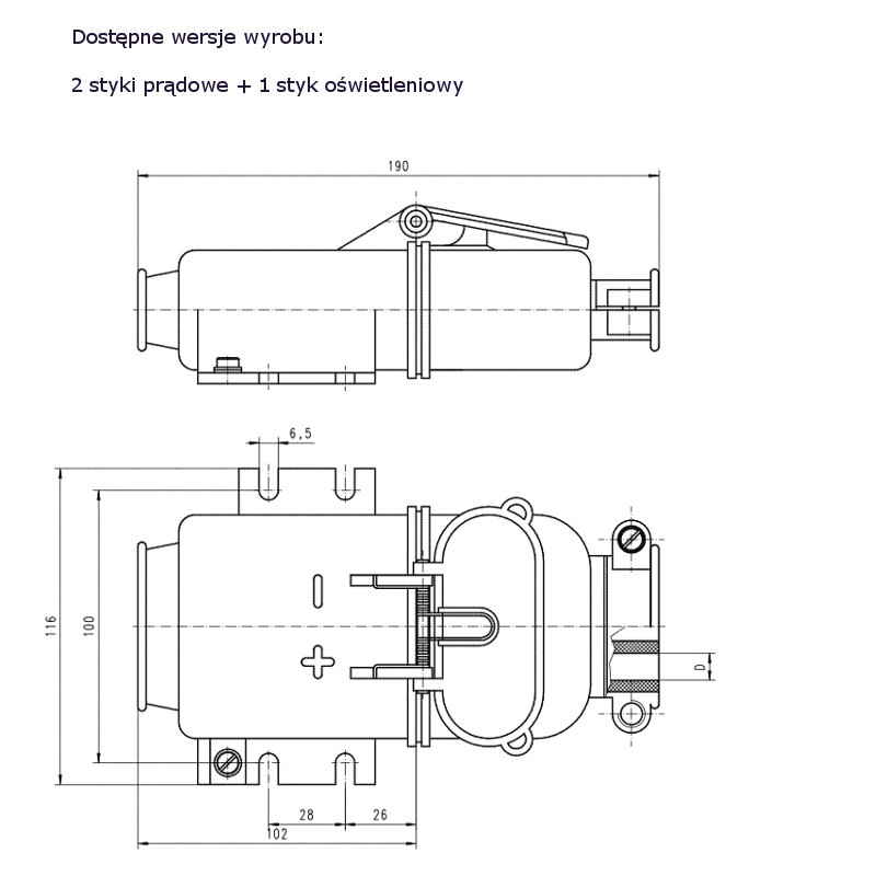 | ZW-2 | ZW-2/1-35 | Wtyczka przenośna | 150A | 2P+1 styk oświetleniowy | 3 | 250V DC |