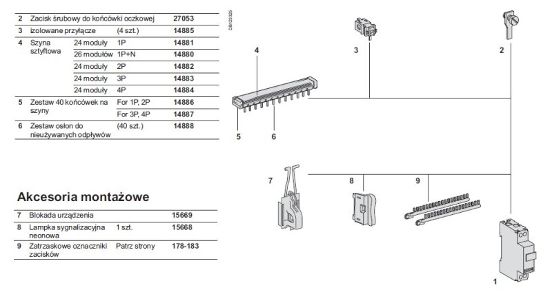 | Numer katalogowy | Liczba biegunów | Rozmiar wkładek | Prąd znamionowy | Napięcie znamionowe |