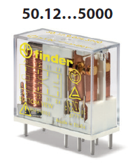Miniaturowy przekaźnik serii 50.12 do obwodów drukowanych i gniazd z mechanicznie sprzężonymi zestykami (wymuszonym prowadzeniem zestyków / o wymuszonym przełączaniu), zgodnie z normą EN 61810-3 (wcześniej EN 50205) Typu B zestyków 2 CO*