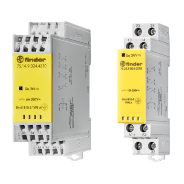 • Do obwodów bezpieczeństwa, zestyki przekaźników sprzężone mechanicznie zgodne z klasą A normy EN 61810-3 (wcześniej EN 50205)
