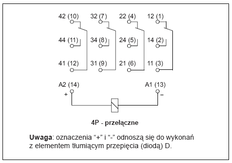 | Liczba i rodzaj zestyków | 4P |