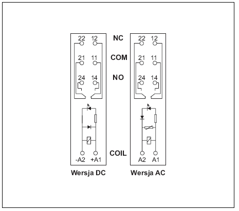 | Maksymalne napięcie zestyków AC/DC | 400 V / 300V |