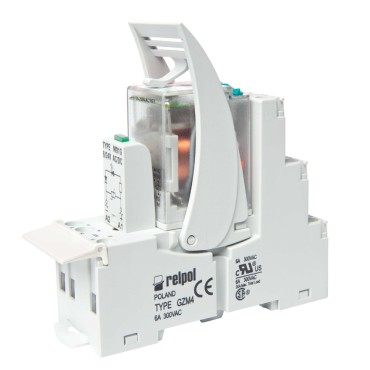 Zestyki: 4P (przełączne); obciążalność AC1 – 6 A/250 V AC; cewki AC lub DC; do montażu na szynie 35 mm lub na płycie; LED zielony; (zestaw: R4N, GZM4, moduł serii M, obejma) |