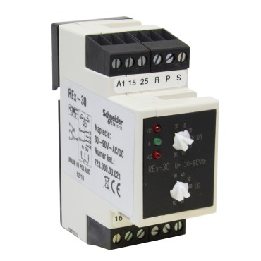 | REx-30 30-90V AC/DC | 723-000-00-021 | Przekaźnik pomiarowy napięciowy | kontrola napięcia | 30-90V AC/DC | 2P | 5A | 25-100V AC/DC |