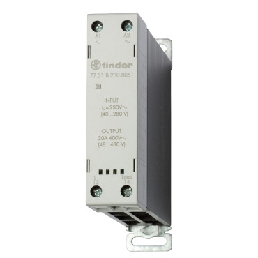 Przekaźniki SSR serii 77.31 to jednofazowe, modułowe przekaźniki półprzewodnikowe z zabudowanym radiatorem, przeznaczone do montażu na szynie DIN. Załączanie w zerze lub w dowolnej chwili (natychmiastowe). Wejście sterujące AC (77.31.8...) lub DC (77.31.9...). Znamionowy prąd obciążenia 30A. Maksymalne napięcie obciążenia wynosi 480V AC. Przekaźniki posiadają zaciski śrubowe. Wyposażome są w zielony wskaźniki LED. Zabudowane na szynie DIN w szafie sterowniczej, zajmują bardzo mało miejsca (22,5 mm szerokości). Przekaźniki serii 77.31 mają zastosowanie w przemyśle i infrastrukturze w trudnych warunkach użytkowania i przy dużym obciążeniu, wytrzymują częste przełączanie np. w systemach oświetlenia, do sterowania grzałkami, grzejnikami, cewkami zaworów i styczników, oraz ze względu na bezgłośną pracę w obszarach wrażliwych na hałas jak biura czy szpitale.