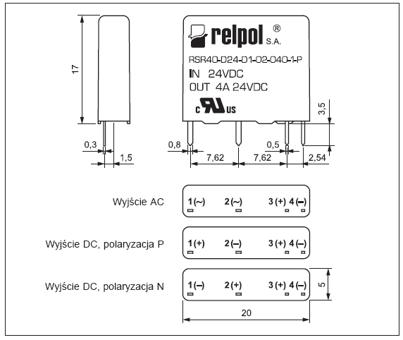 | RSR40-D24-D1-02-040-1-P | 2612008 | 4A | 24V DC | 0-30V DC | 18-32V DC | załączający w DC |
