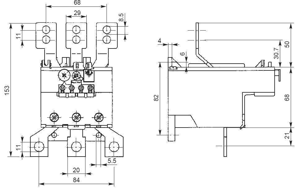 Przekaźniki termobimetalowe TA 200 DU... są to trójbiegunowe przekaźniki cieplne przeciążeniowe stanowiące podstawowe zabezpieczenie silnika. Przekaźniki służą do zabezpieczenia obwodów i silników prądu przemiennego przed przeciążeniem, zanikiem fazy i długim rozruchem. Występują w 6 podzakresach w zakresie od 66....200A . Przeznaczone są do współpracy ze stycznikami A/AF145...185. Klasa przekaźników: 10A