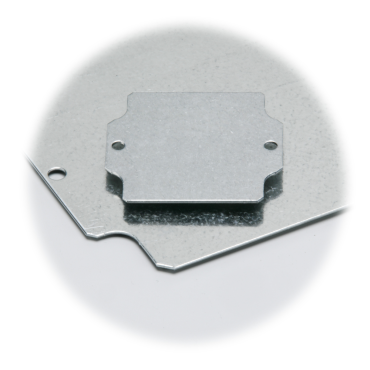 Płyty montażowe do obudów Fibox serii Euronord wykonane ze stali ocynkowanej.