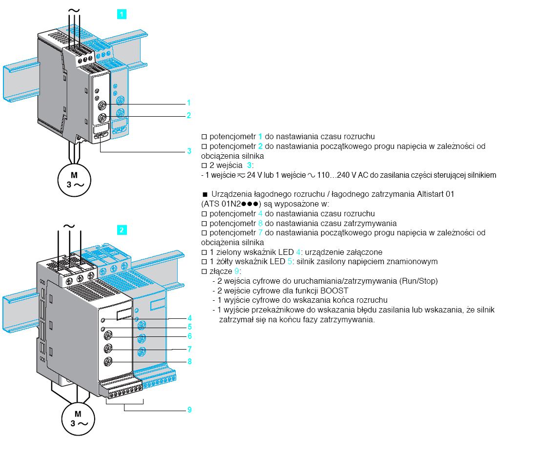 Układ łagodnego rozruchu oraz zatrzymania silników Altistart 01 produkowany przez Telemecanique a sprzedawany pod marką Schneider Electric obsługuje wszystkie silniki asynchroniczne jedno i trójfazowe w zakresie mocy od 0,37 do 45kW. Przeprowadza ich rozruch łagodnie i w optymalnych warunkach dla silnika. Sposób jego konfiguracji jest prosty i szybki.