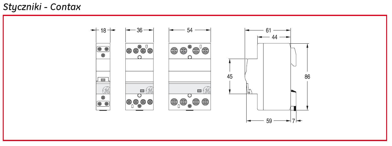 Styczniki modułowe serii Contax należą do linii aparatury modułowej Redline stanowiącej kompleksową ofertę aparatury modułowej firmy General Electric. Występują w czterech zakresach prądowych od 20 do 63A.