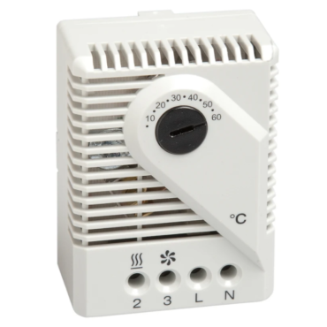 Termostat mechaniczny FZK011 stosowany jest do sterowania ogrzewaczami, wentylatorami z filtrem lub sygnalizacją. Za pomocą szybkich i mocnych styków załącza obciążenia indukcyjne i rezystancyjne. Działanie: Nastawa temperatury na skali wskazuje górną granicę temperatury przy której styk NC otworzy się. Nastawiona temperatura pomniejszona o wartość szerokości histerezy i tolerancji da nam dolną granicę przy której styk NC zostanie zamknięty.
