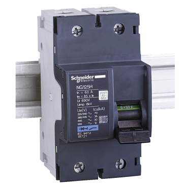 Systemy Acti 9 serii NG125H to zabezpieczenie ograniczające prąd. Wyłącznik posiada opóźniony termiczny mechanizm wyzwalający do ochrony przed przeciążeniem i wyzwalacz elektromagnetyczny do ochrony przed zwarciem. Seria produktów NG125H w charakterystyce C jest zgodna z normamą EN60947-2 co pozwala na zastosowanie w aplikacjach komercyjnych i przemysłowych.