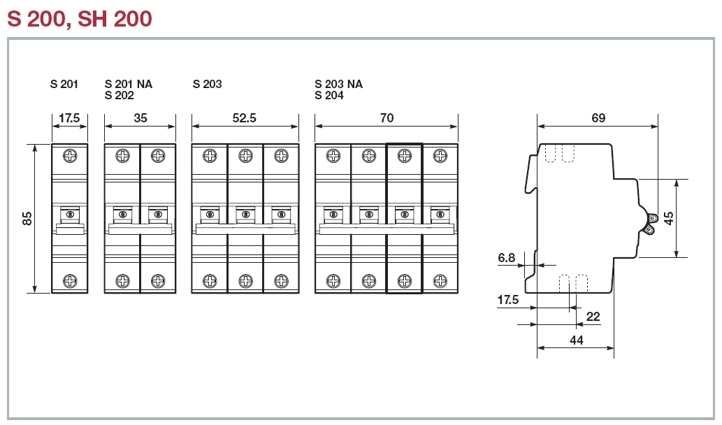 | 4 | S203-B4 | 2CDS253001R0045 | S203-C4 | 2CDS253001R0044 | S203-D4 | 2CDS253103R0041 |