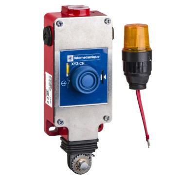Wyłączniki bezpieczeństwa XY2CH firmy Telemecanique Sensors to linkowe wyłączniki cięgnowe zatrzymania awaryjnego z blokadą, przeznaczone do pracy w układach kontrolno-sterowniczych bezpieczeństwa maszyn. Służą do monitorowania i bezpiecznej ochrony osób oraz instalacji technicznych i zapewniają możliwość wyłączenia maszyny w najwcześniejszym możliwym momencie gdy nie działa normalna funkcja wyłączenia maszyny. Wyłączniki linkowe z cięgnem pozwalają w dowolnym miejscu stanowiska roboczego zatrzymać maszynę lub proces produkcyjny, poprzez pociągnięcie cięgna wyłącznika za pomocą linki rozciągniętej wzdłuż stanowiska roboczego. Wyłączenie następuje również w przypadku zerwania linki bezpieczeństwa. Punkt zaczepienia cięgna roboczego może być z prawej lub lewj strony (przez obrócenie wyłącznika). Urządzenia wyposażone są w niebieski przycisk kasowania ręcznego (w zależności od wersji może być przycisk kryty, przycisk okapturzony, dłoniowy lub dłoniowy z kluczem. Wyłączniki linkowe zatrzymania awaryjnego serii XY2CH mogą być stosowane do rozwiązań z linką bezpieczeństwa o maksymalnej długości 30 m. Wykonane są w metalowej obudowie z Zamaku, w kolorze czerwonym, z metalową nierdzewną pokrywą w kolorze szarym. Akcesoria do montażu jak linki, wsporniki, śruby rzymskie i sprężyny końcowe należy zamawiać oddzielnie.