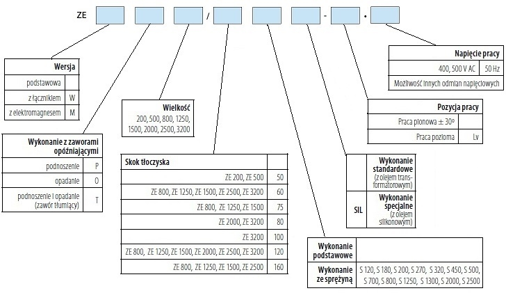 Dla wersji z elektromagnesem należy zamienić w symbolu ZE >> ZEM.